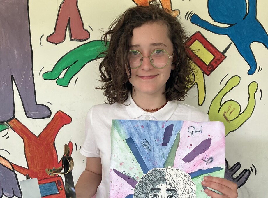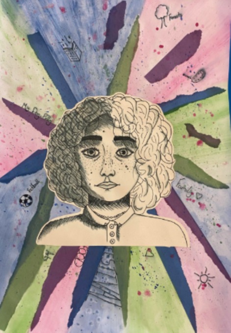 Congratulations to Freya who has been awarded the Mrs Pelling Art Award for summer 2025 for her fabulous line drawn self-portrait with mixed media background. Well done Freya!
